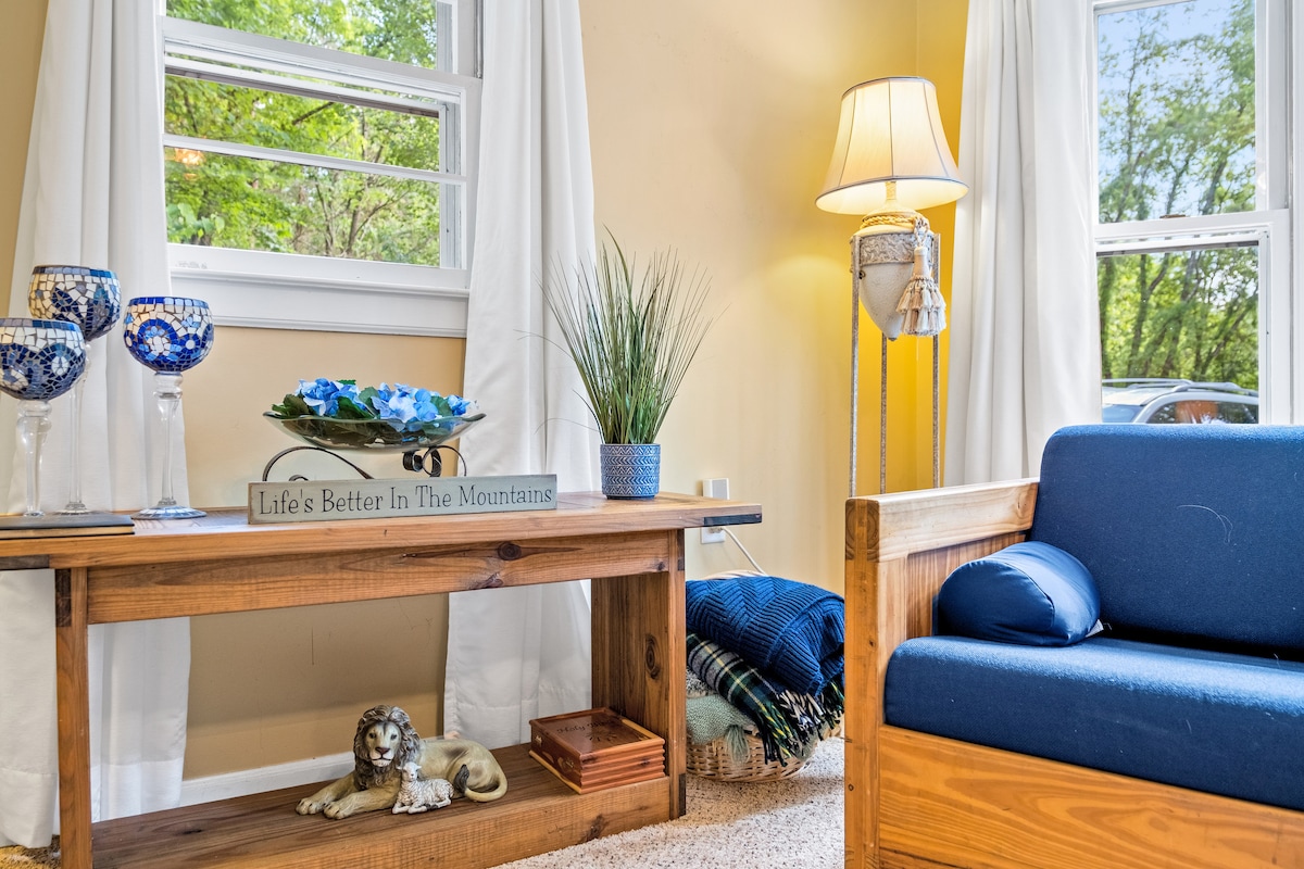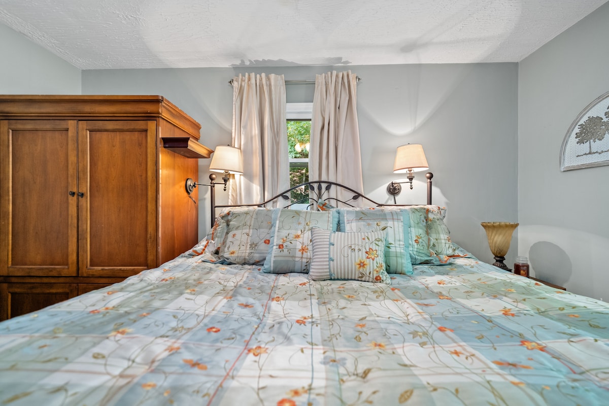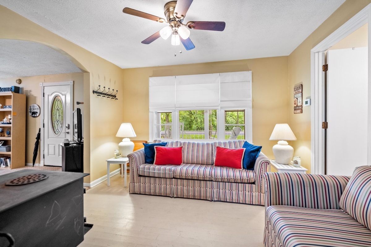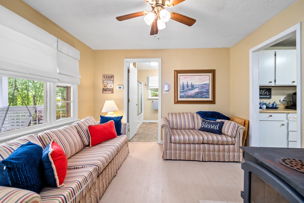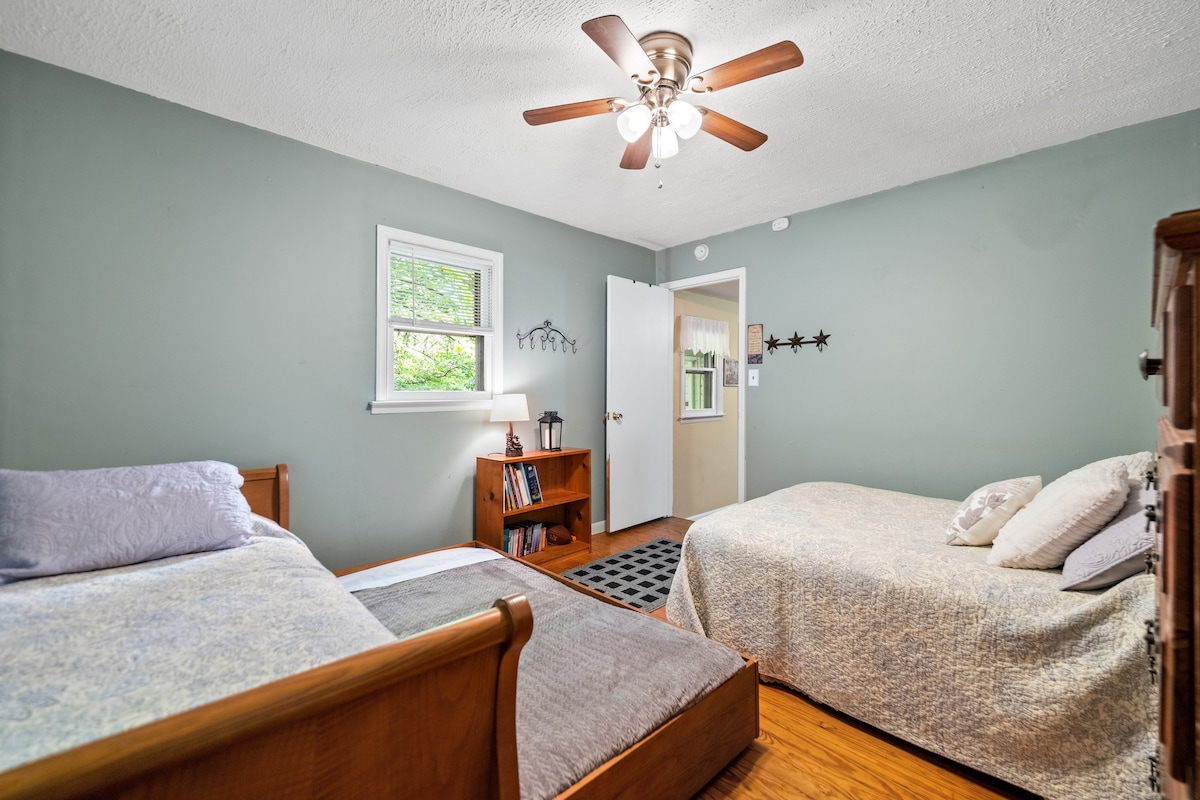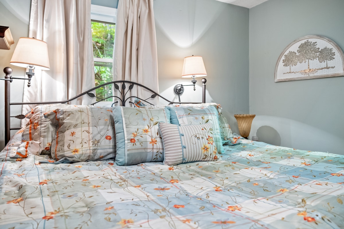 This cottage has two gorgeous bedrooms with comfortable mattresses and pillows, plus luxury bedding with quilts for long nights of blissful sleep. The first bedroom has a King-sized bed with a spacious closet. The second bedroom has 2 beds, 1 twin trundle bed, and a single bed with an extra pull-out, perfect for kids or extra family and friends.
