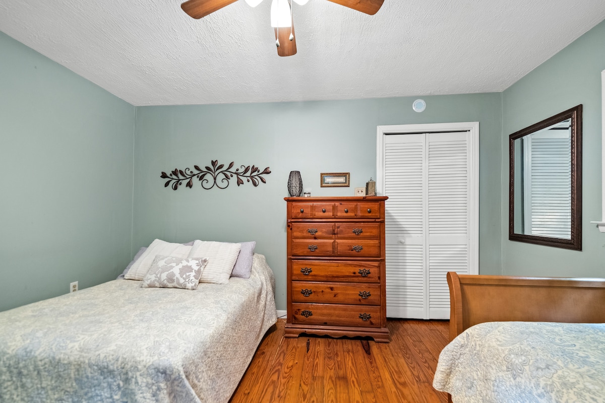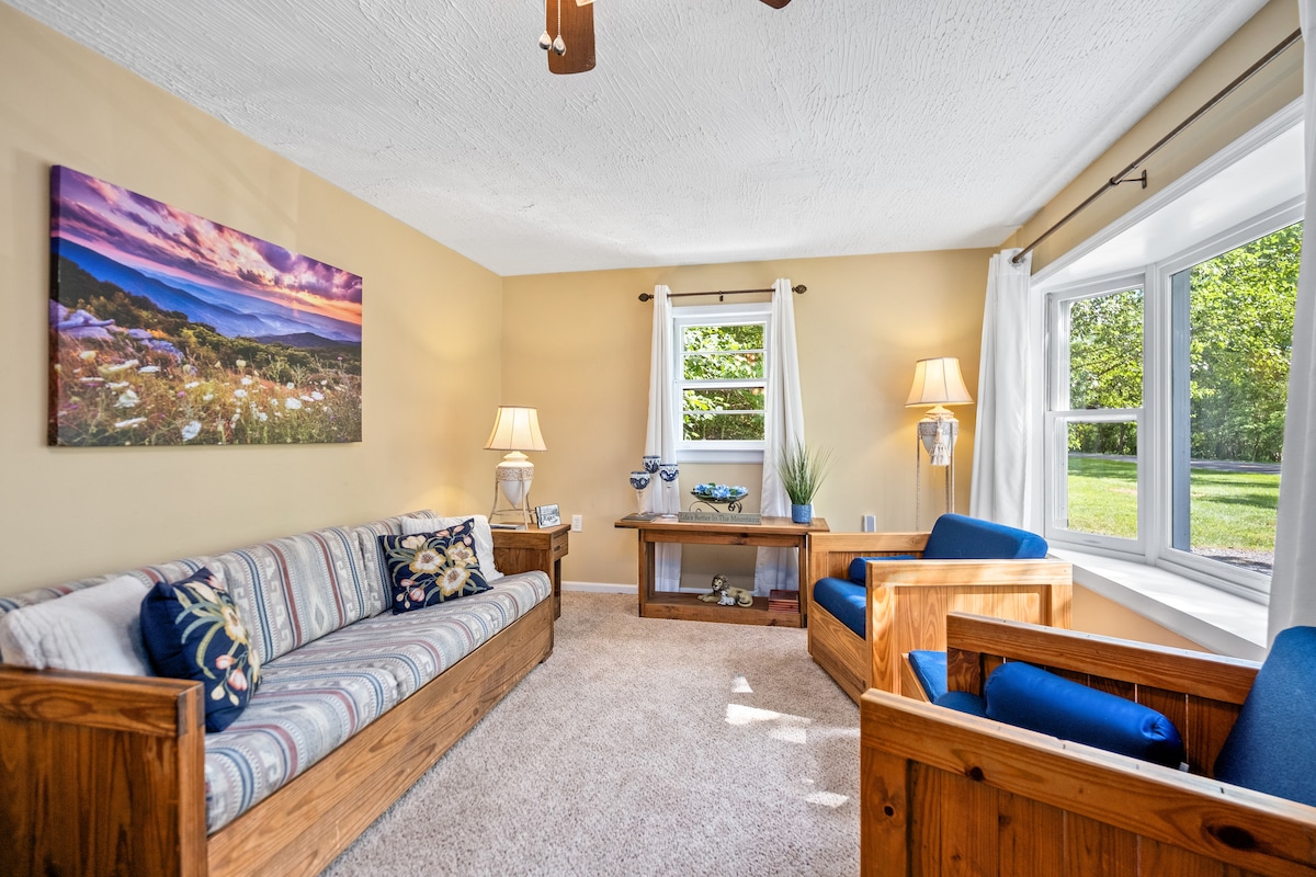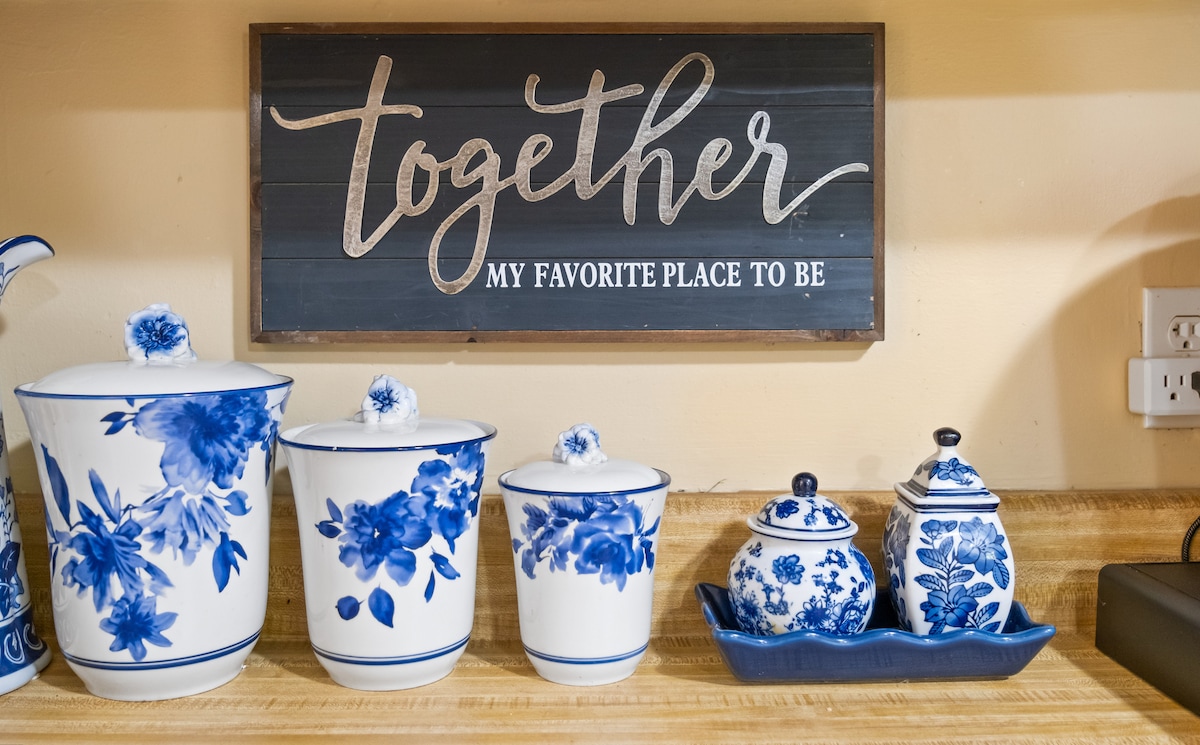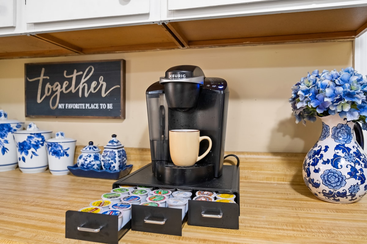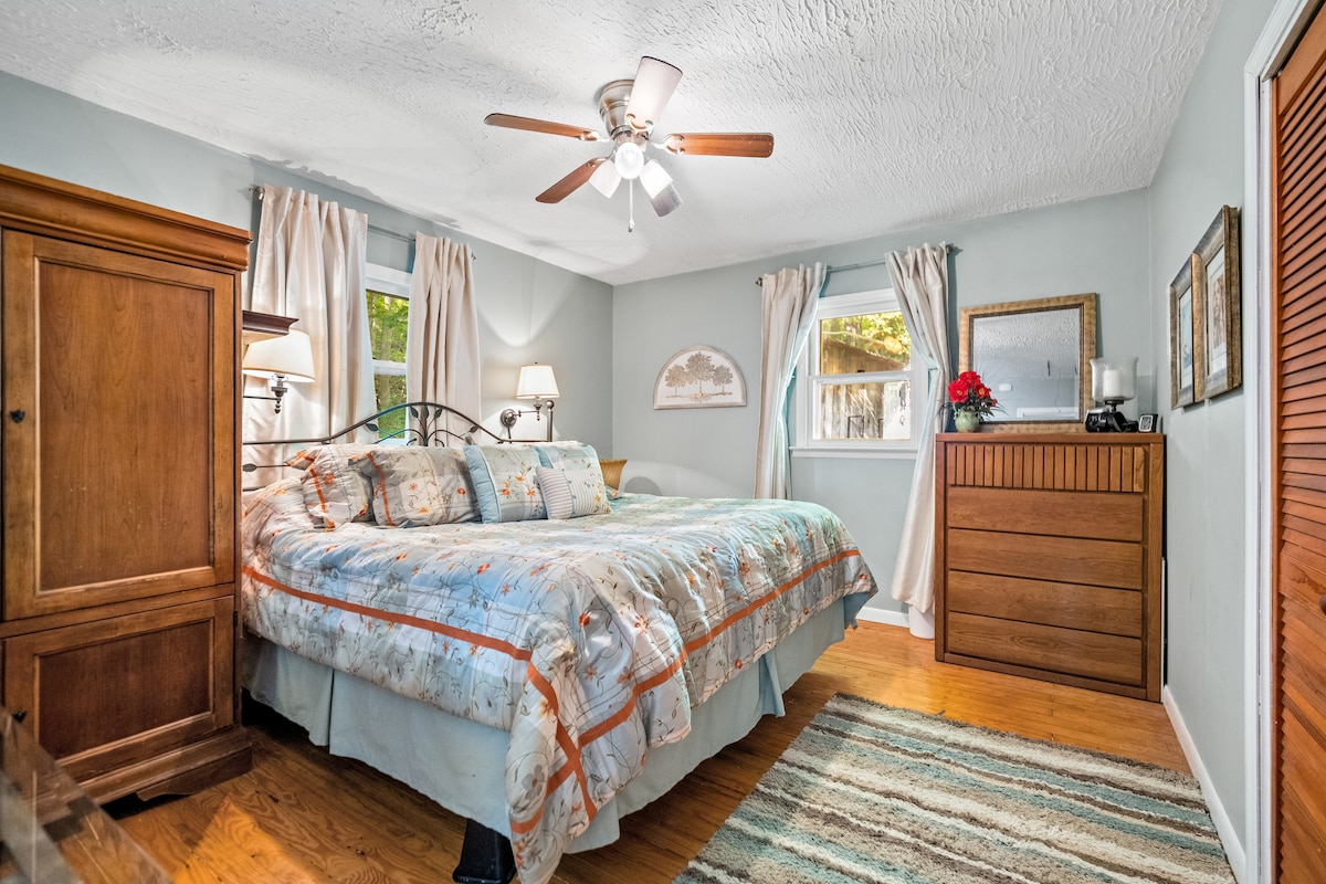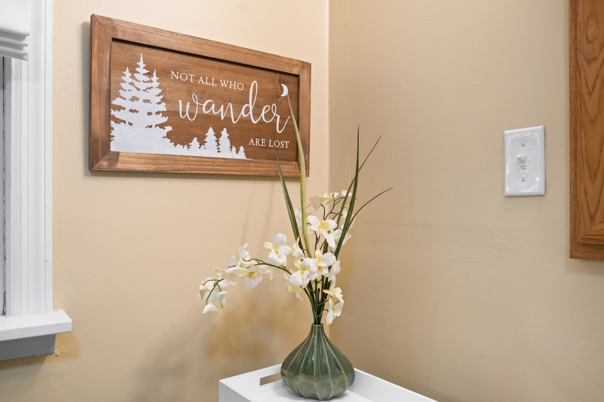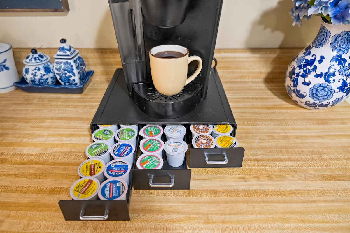 This cottage has two gorgeous bedrooms with comfortable mattresses and pillows, plus luxury bedding with quilts for long nights of blissful sleep. The first bedroom has a King-sized bed with a spacious closet. The second bedroom has 2 beds, 1 twin trundle bed, and a single bed with an extra pull-out, perfect for kids or extra family and friends.