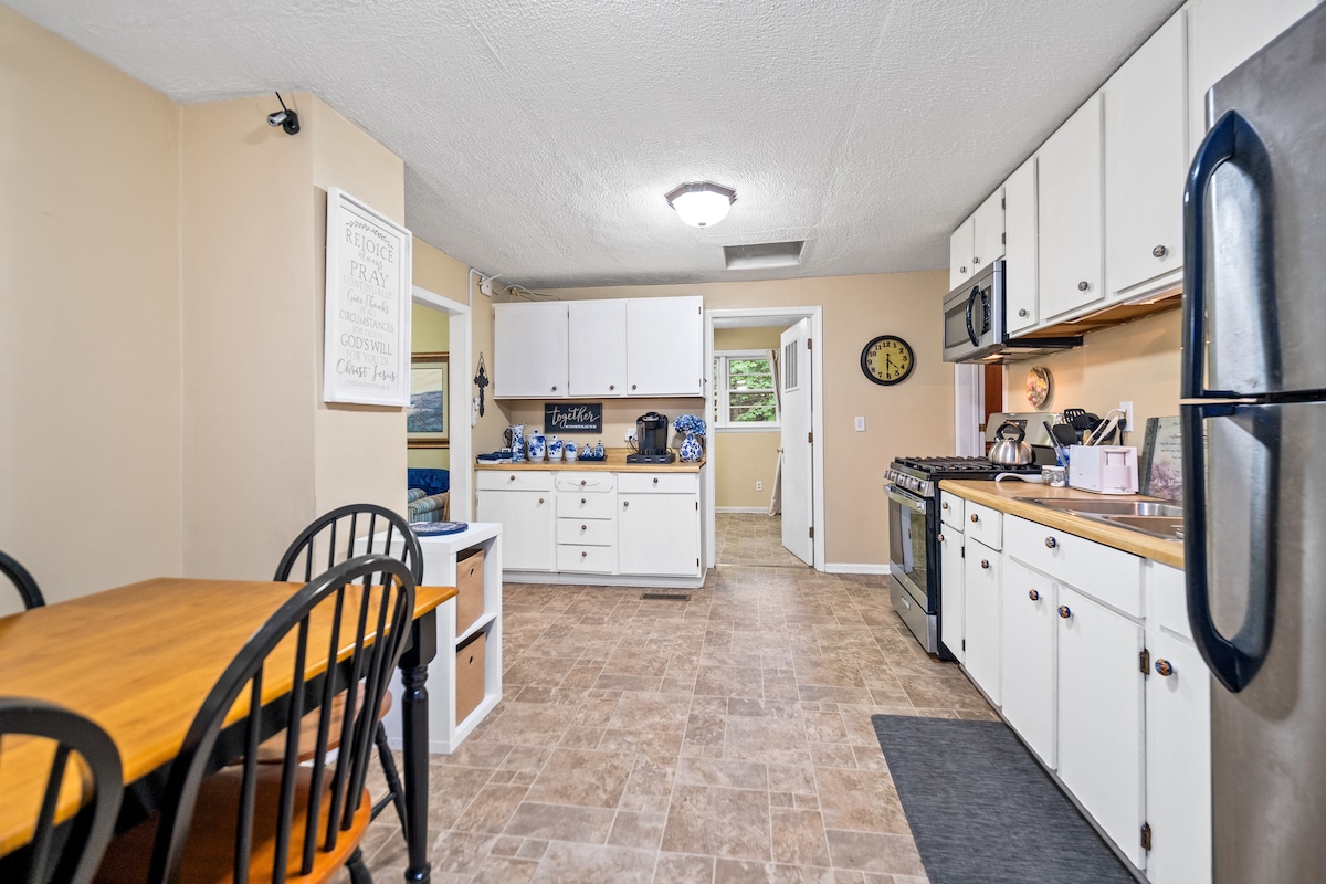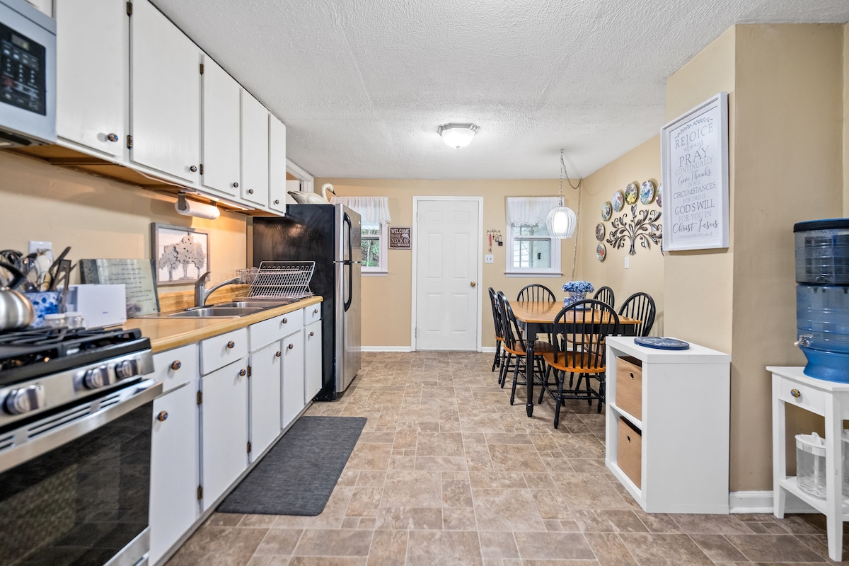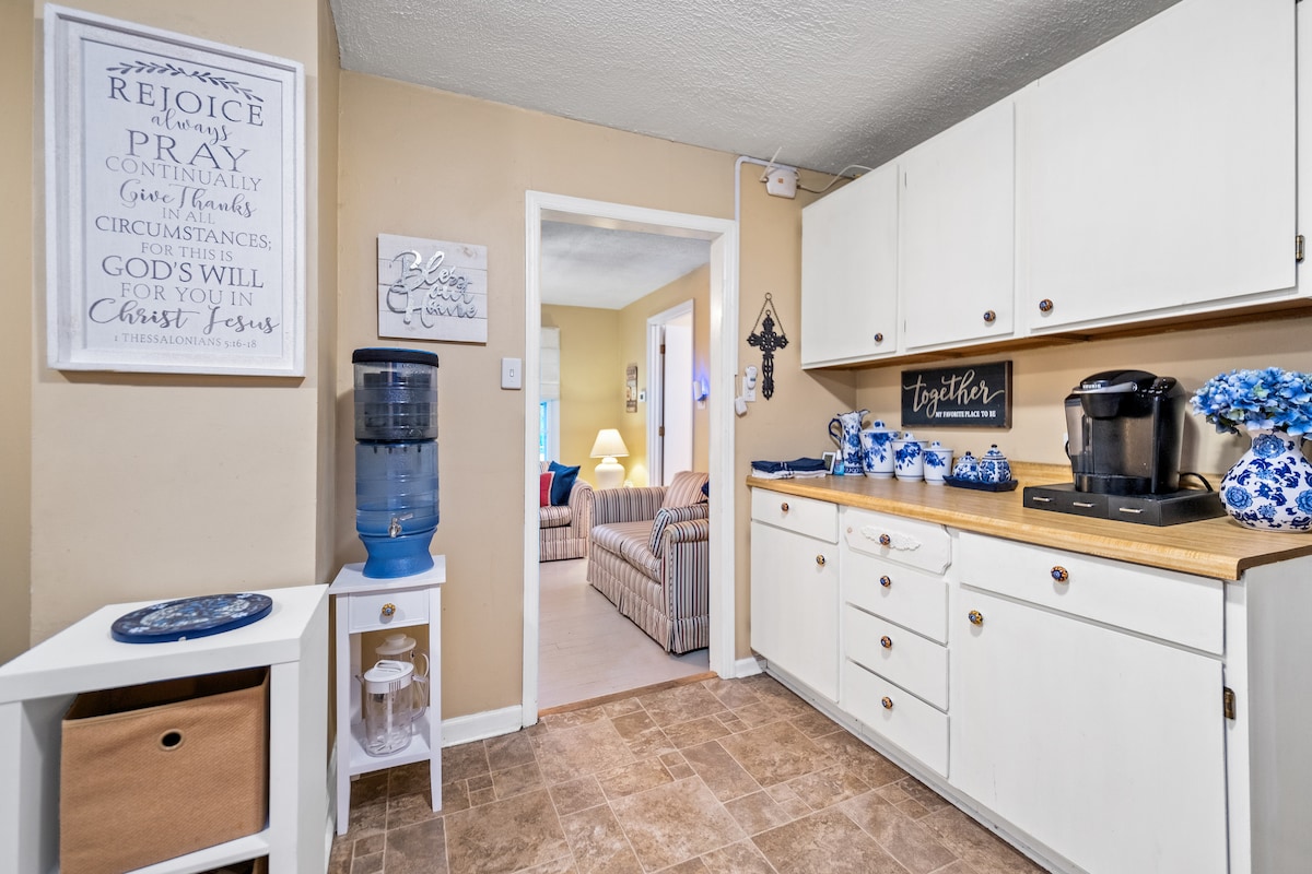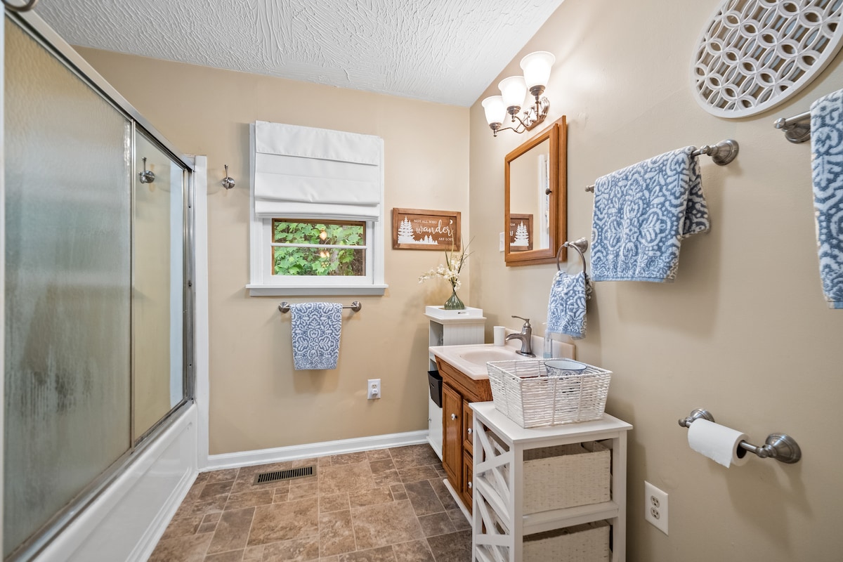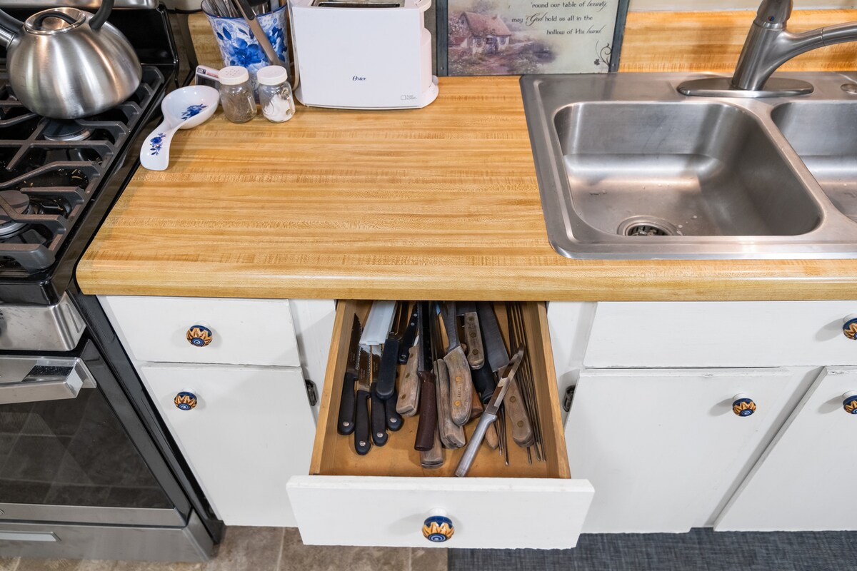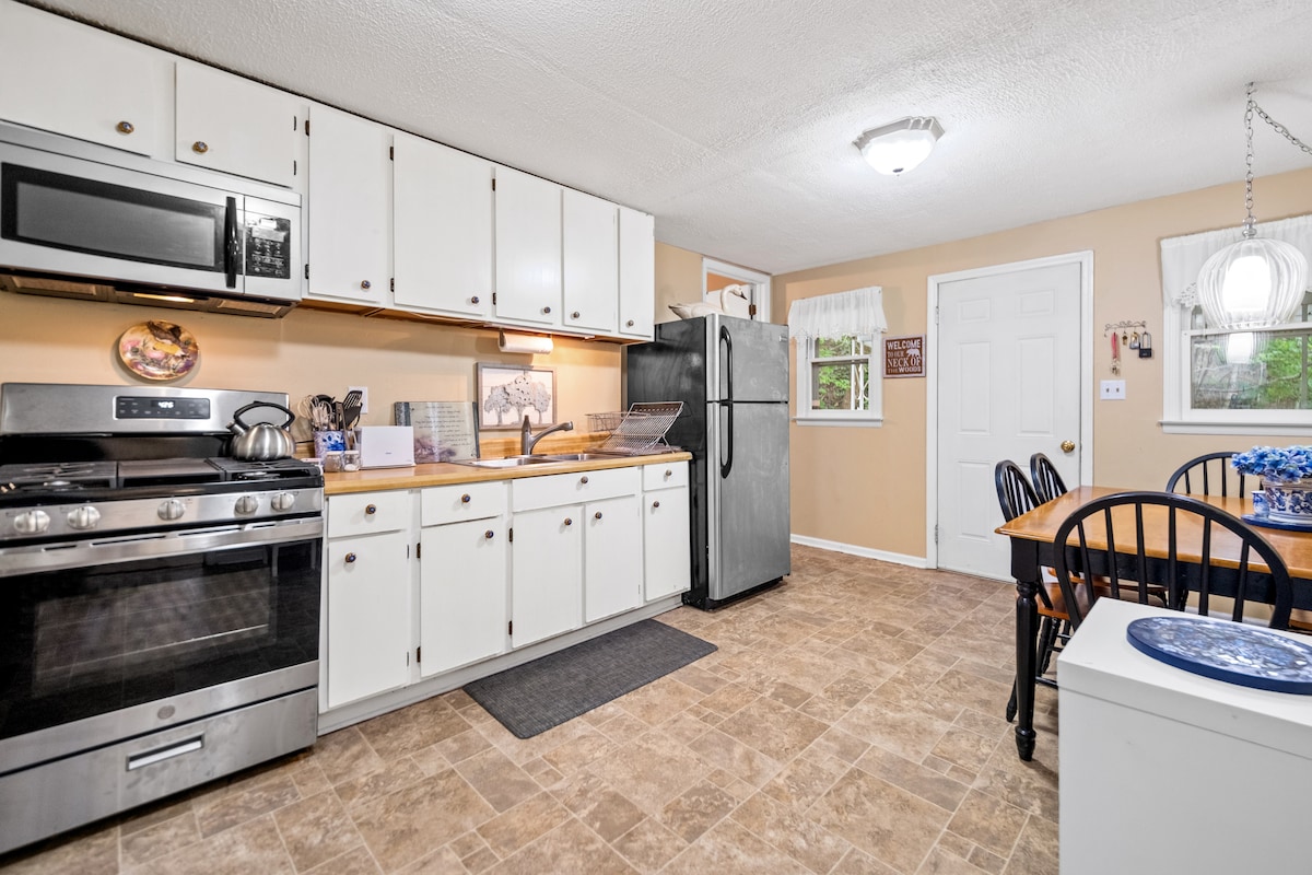 This cottage has two gorgeous bedrooms with comfortable mattresses and pillows, plus luxury bedding with quilts for long nights of blissful sleep. The first bedroom has a King-sized bed with a spacious closet. The second bedroom has 2 beds, 1 twin trundle bed, and a single bed with an extra pull-out, perfect for kids or extra family and friends.