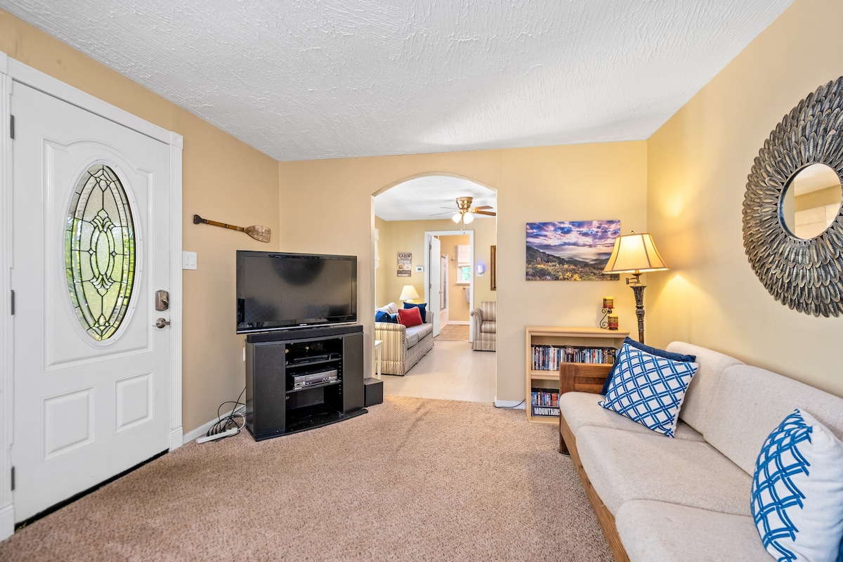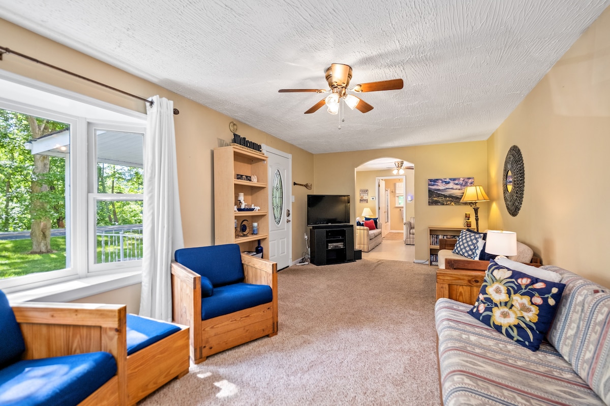 The house has good internet which makes for a perfect work-cation getaway! Relax in the cozy living room while watching the Smart TV.