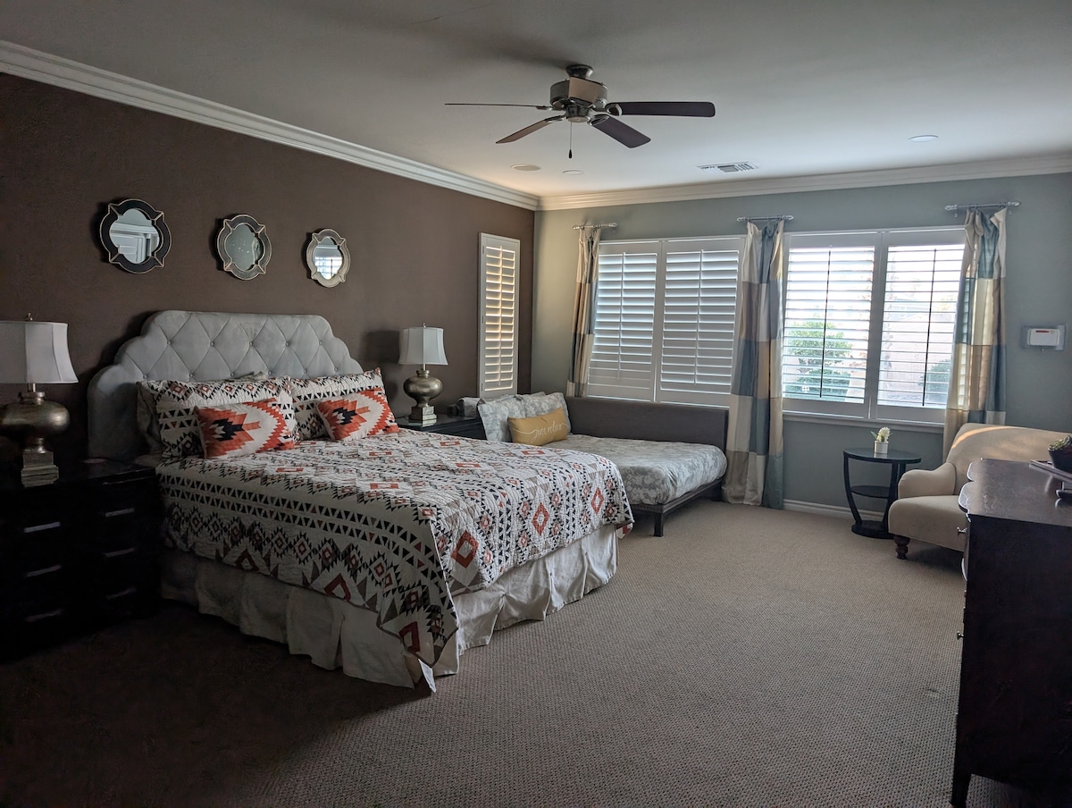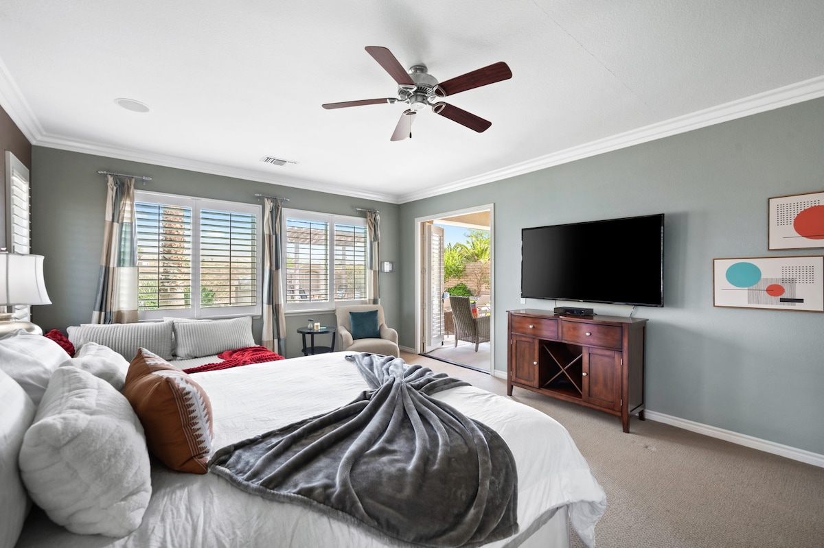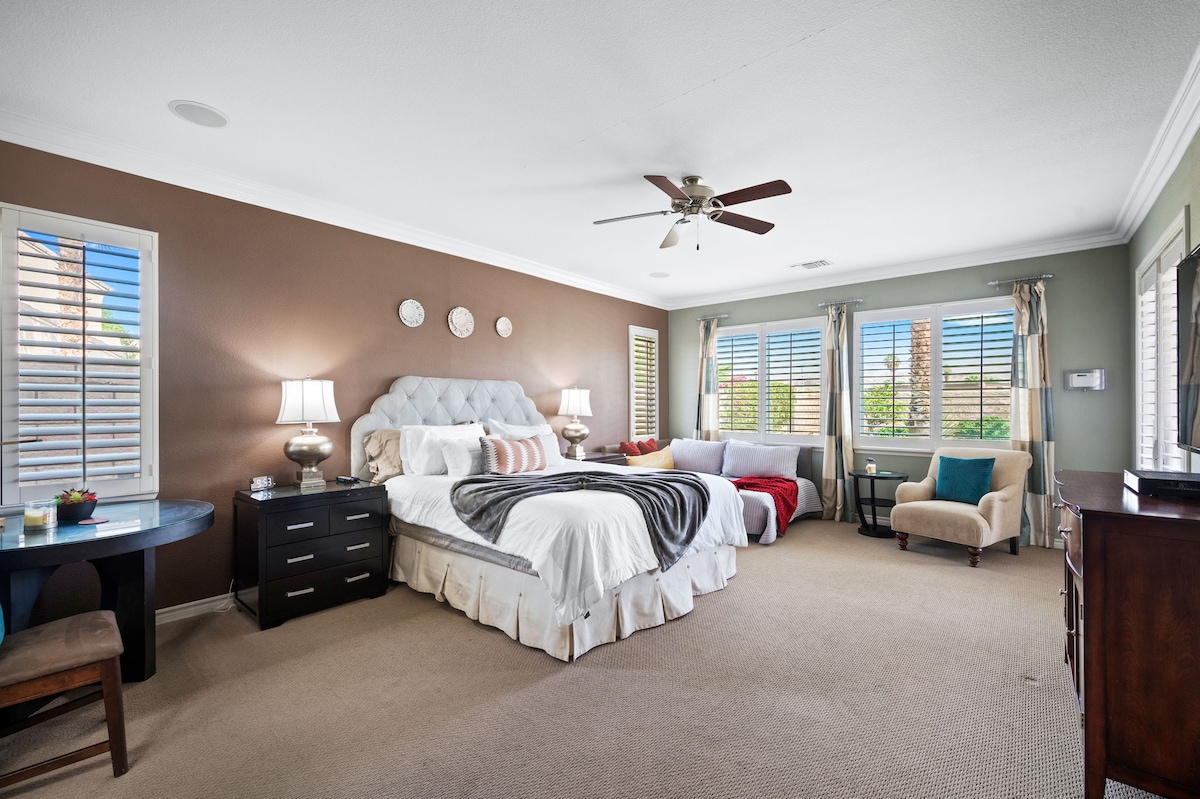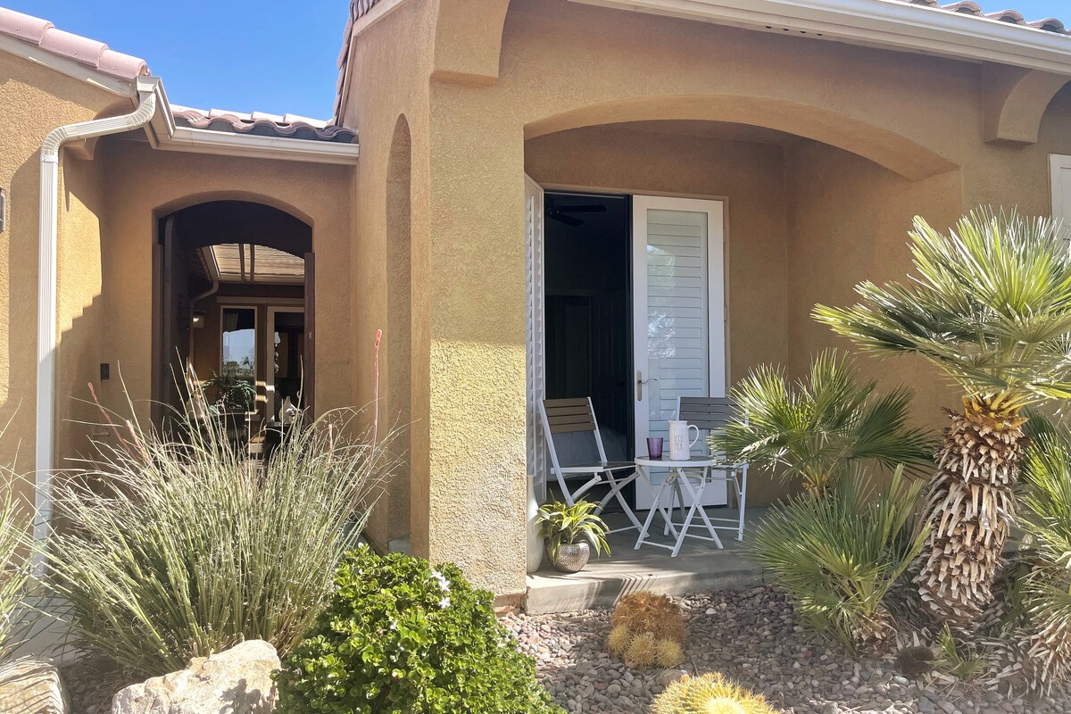 Let our place be your oasis retreat in Coachella Valley. Enjoy a glass of wine in the courtyard or soak in the pool or spa with Shadow Mountain views to unwind the day away. We are located in the safe and beautiful gated lake community. Terra Lago is just a short drive away from casinos and festival venues.